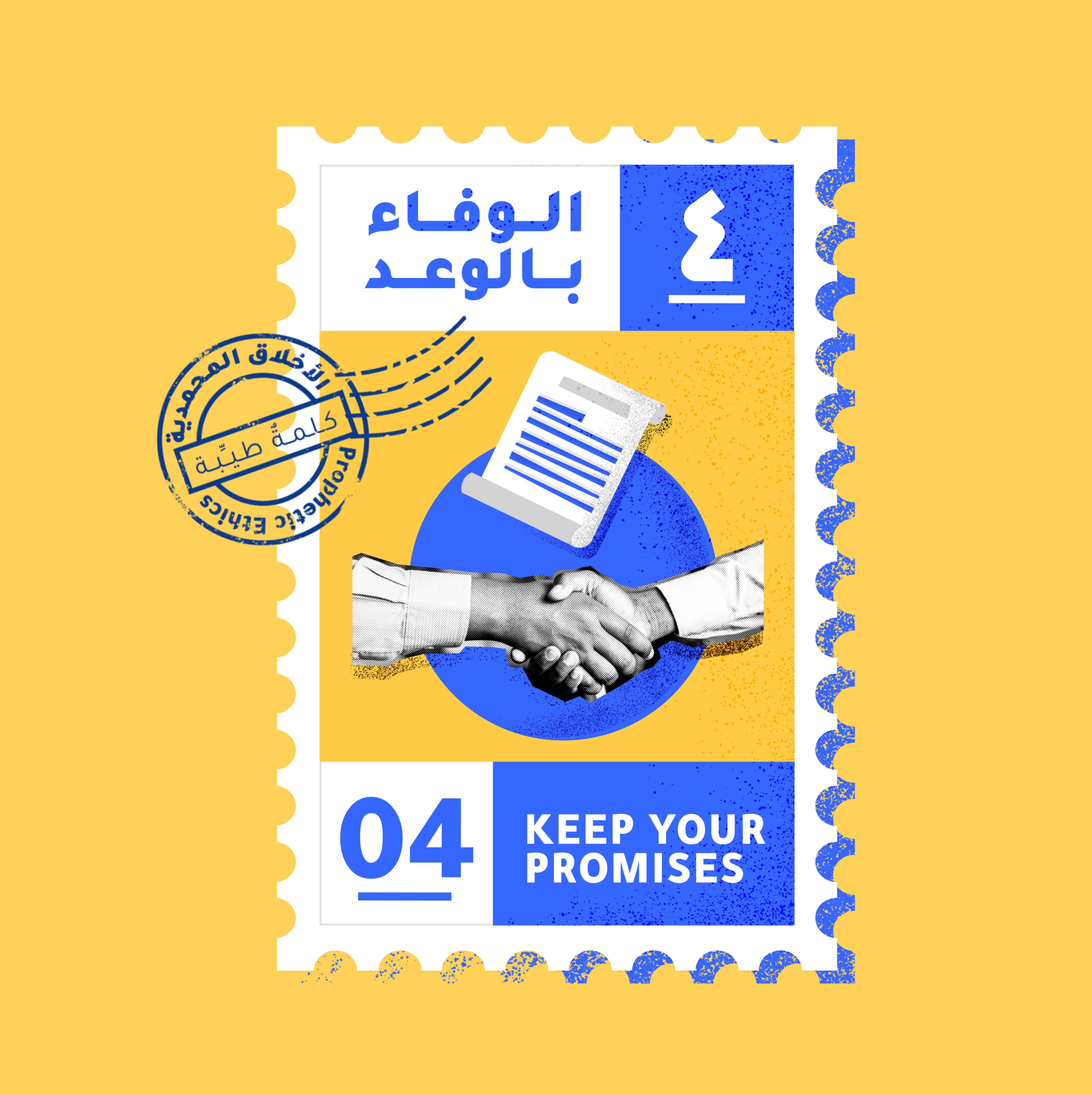• ألتزم بكلمتي إن وعدت أحداً بشيء والوفاء بوعدي ولو كان ذلك على حساب مصلحتي الشّخصيّة